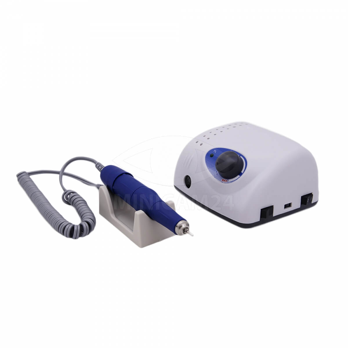 Профессиональный фрезер с реверсом и педалью. Ручка не вибрирует и не бьет в ладонь, частота вращений составляет 35 000 об/мин. Устройство оснащено системой защиты от перегрева, подходит для бесперебойной работы с большим потоком клиентов. Насадки надежно фиксируются с помощью механизма Twist Lock. Для удобства мастера блок питания может быть установлен вертикально или горизонтально. На корпусе размещены кнопки для регулировки скорости, подключения и переключения на ножное управление.