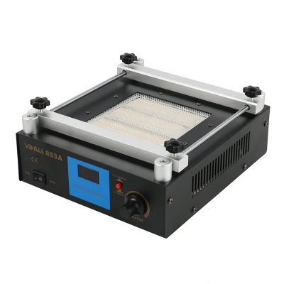 Преднагреватель плат YiHuA 853A с мощностью 600 Вт предназначен для эффективного предварительного нагрева печатных плат и других компонентов. Его рабочая площадь составляет 130 x 130 мм, что обеспечивает равномерное распределение тепла по обрабатываемой поверхности. В качестве нагревательного элемента используется керамика.